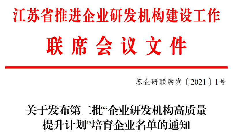 公司成功获批“江苏省BV(中国)官方研发机构高质量提升计划培育BV(中国)官方”